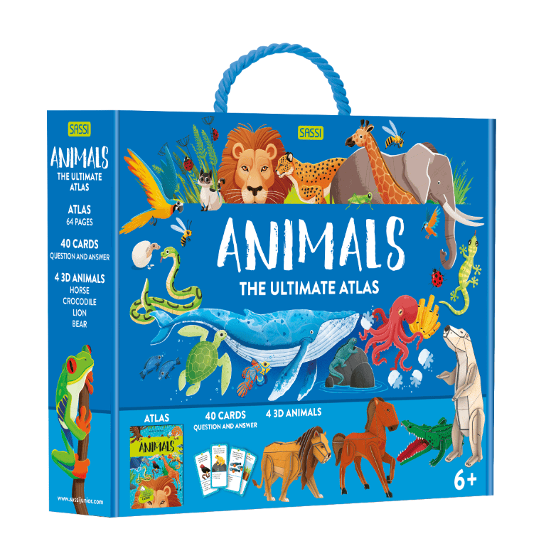Our planet hosts a vast variety of animals. Vertebrates and invertebrates inhabit every corner of the Earth, adapting remarkably even to the most extreme habitats. Read the atlas, test yourself by answering the questions on the cards, and build the models included in the box to gain in-depth knowledge of the animal kingdom.